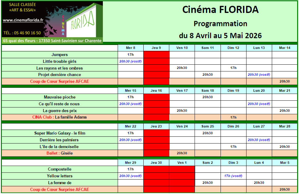 Téléchargez le programme du 8 Avril au 5 Mai 2026 :